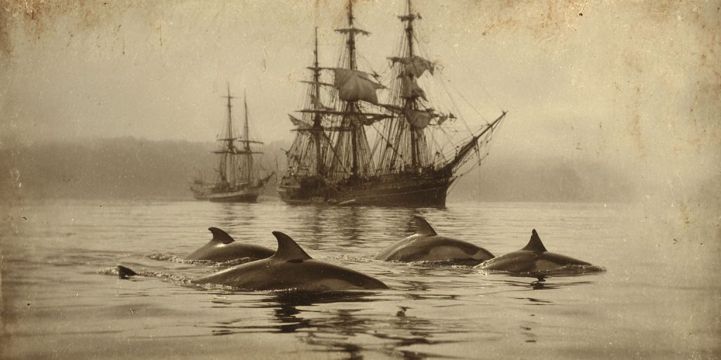 During the 1700s, sailors believed that dolphins swam ahead of storms and helped guide them out of danger. Colonists who relied on the sea for trade and supplies would have treasured sightings of dolphins, especially during wartime blockades or when crossing unknown waters. Stories from this era tell of dolphins leading damaged ships toward safe harbors or calming troubled seas, whether fact or fiction, the idea added comfort to a time filled with uncertainty.