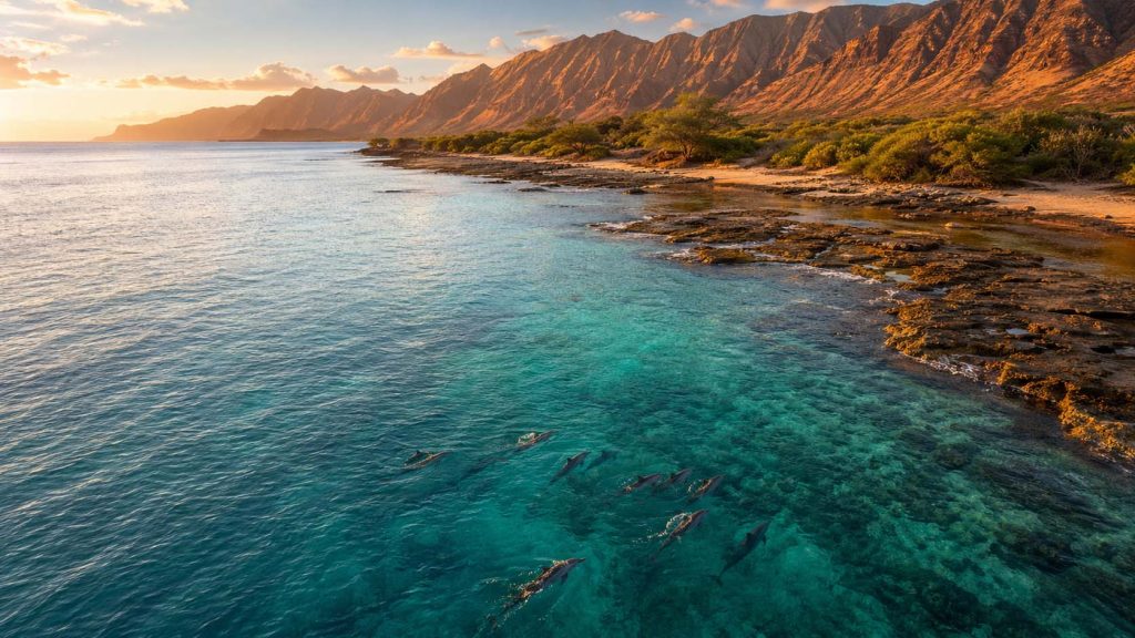 As the night winds down and the deep scattering layer begins its morning descent back into the depths, the dolphins start moving toward shore. They return to the same shallow bays they left the evening before, and the transition from nighttime hunter to daytime rester is one of the most reliable patterns in Hawaiian marine life.