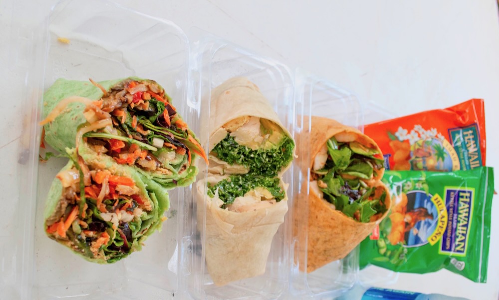 美しいワイメア渓谷の景色の中で、ヘルシーで美味しいロールサンドイッチを食べます。チキンシーザーラップ、ピリ辛シュリンプラップ、ベジラップから選んでいただけます。ハワイアンチップスとクッキー、お水も付きます。